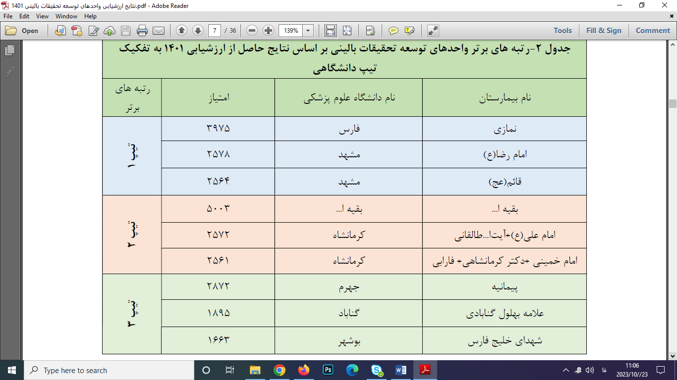 1 کسب رتبه برتر کشوري توسط واحد توسعه تحقيقات باليني بيمارستان امام رضا(ع) در ارزشيابي سال 1400 مستند