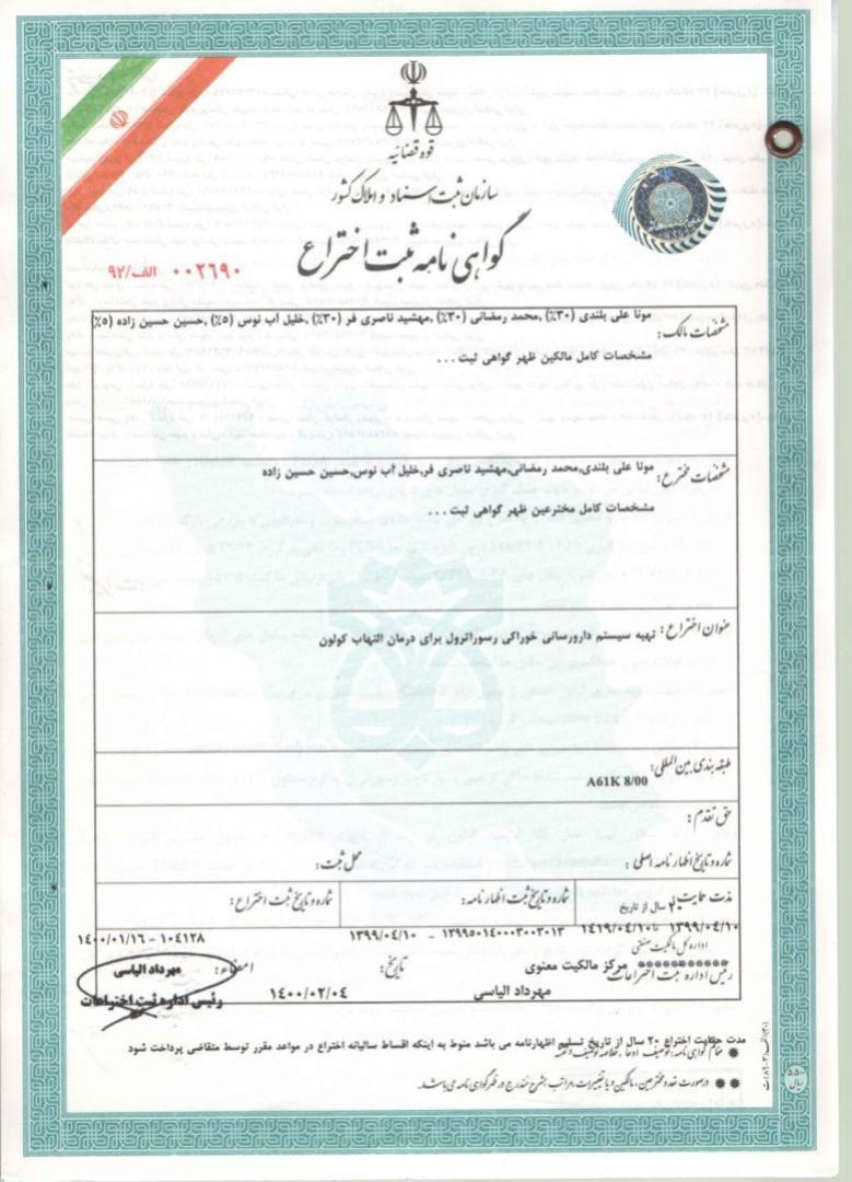 | 9 | رحیم | نصرتی | دانشجوی دانشگاه علوم پزشکی مشهد | کود بیولوژیک چندگانه | US20210261476A1 | 1400/06/04 | |
