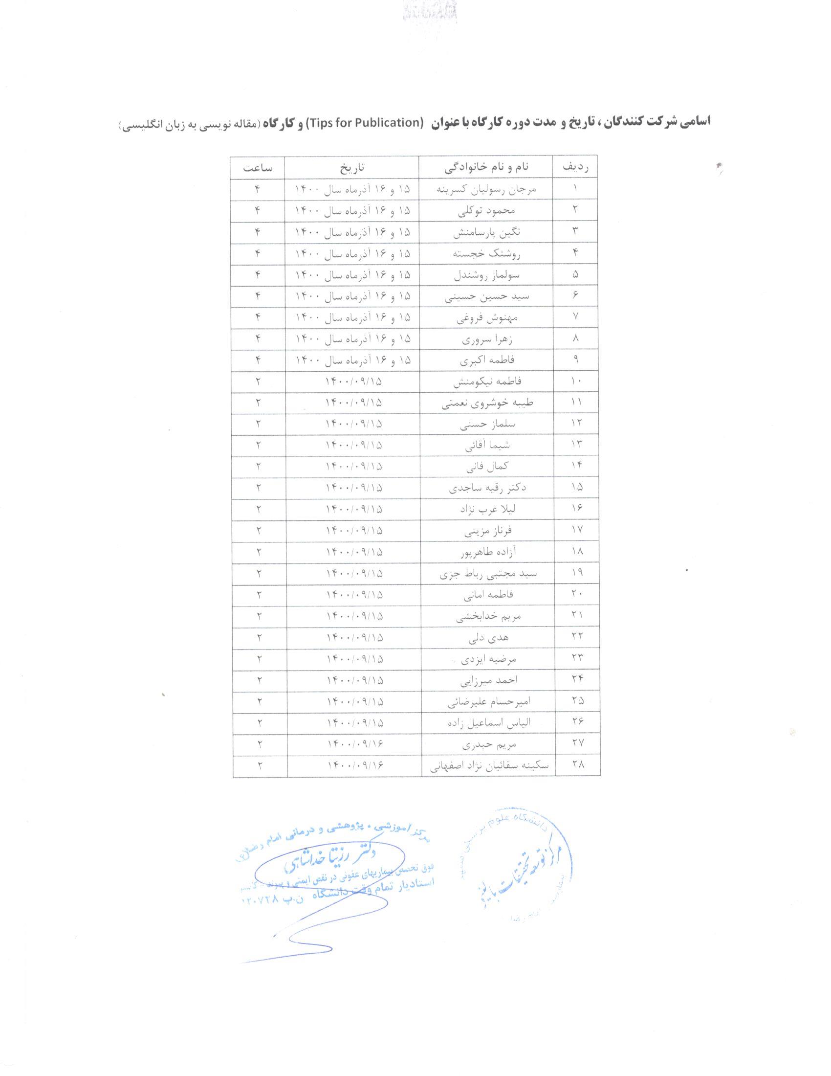20 نفر | دکترنگارمروت دار | فهرست شرکت کنندگان |