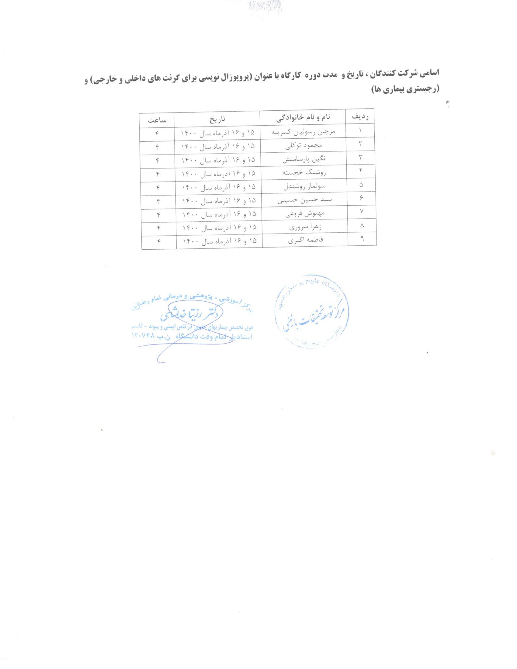 | کارگاه هاي آموزشي واحد توسعه تحقيقات باليني بيمارستان امام رضا (ع) در سال 1400 | ||||||